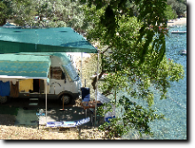 Se avete un vostro battello, a parte il servizio gratuito di messa a mare, lo potrete ormeggiare direttamente nel golfo a pochi metri dal vs. caravan o camper.